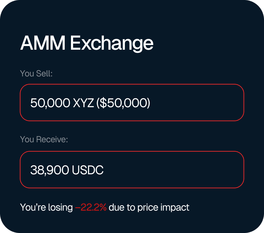 Uses constant product formula (x*y=k), causing price impact for large trades.